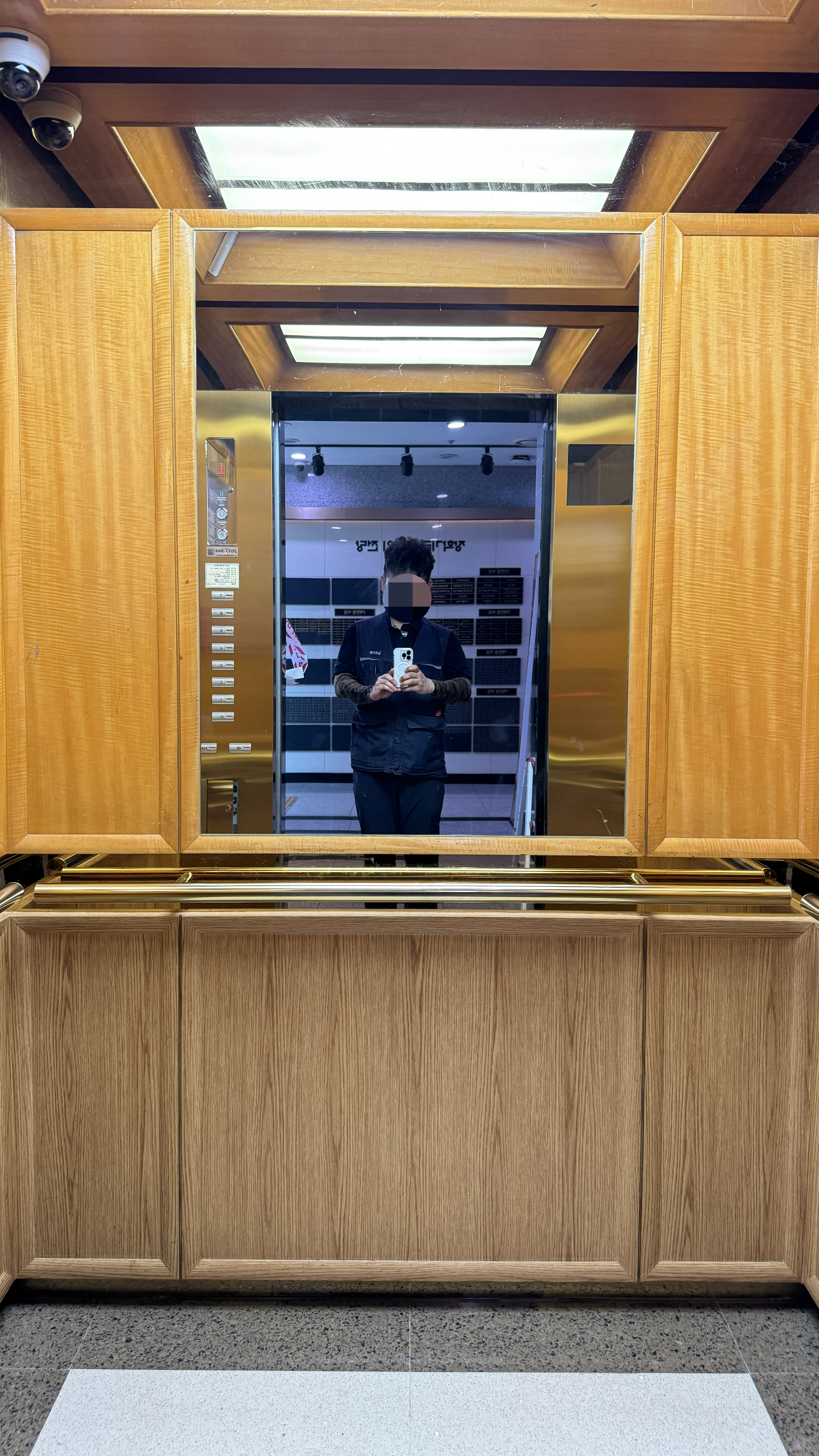 승강기 내부 벽면에 붙어있던 거울은 떼어내고